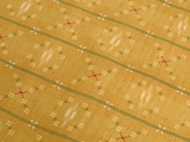 Originating around the 15th century, Yuntanza Hana-ui was once designated as the cloth of the royal administration of Ryūkyū, and commonfolk were were not permitted to wear it. It is a tropical fabric with geometric patterns expressed using silk and cotton thread and further decorated with striped, checked and/or kasuri splashed patterns.